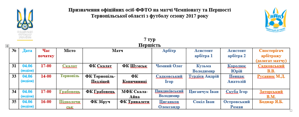 Призначення офіційних осіб на поєдинки 4 червня