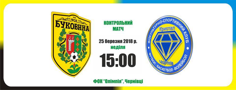 Протягом короткого періоду часу учасник аматорського чемпіонату України і бронзовий призер обласного чемпіонату чортківський «Кристал» двічі зустрічався з друголігововю чернівецькою «Буковиною». І якщо тиждень тому наші земляки поступилися професіоналам (2:3), то сьогодні, 25 березня, у Чернівцях на футбольному полі зі штучним покриттям була зафіксована нічия – 1:1.