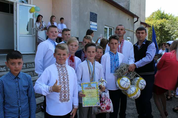 Історична світлина – 1 вересня 2017 року під час свята Першого дзвоника школярі з Увисли отримують футбольні м’ячі