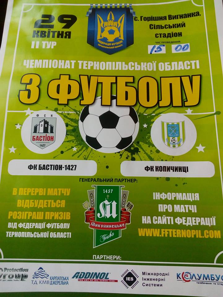 «Бастіон-1427» (Горішня Вигнанка) – ФК «Копичинці» – 2:3 (0:3)