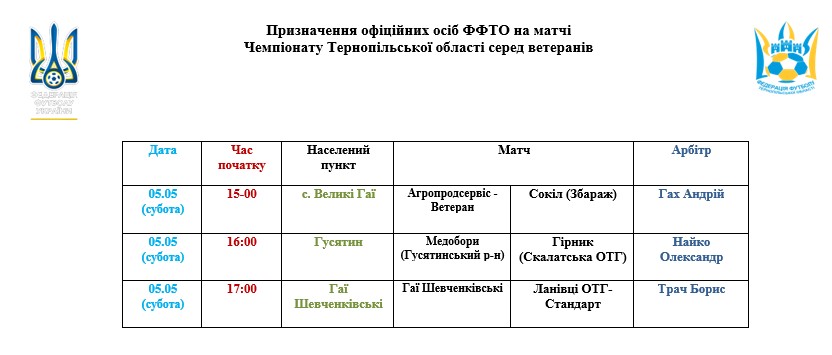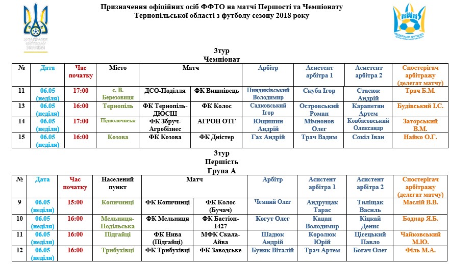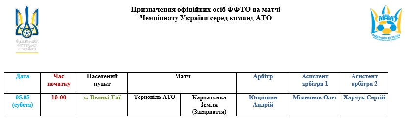 Призначення офіційних осіб ФФТО на матчі 05-06 травня (Зміни)