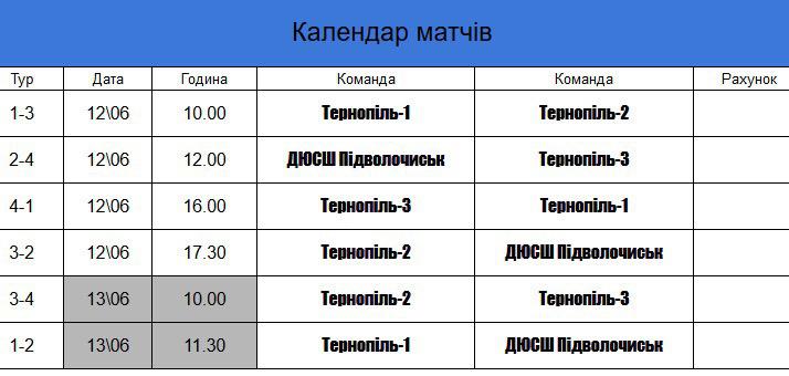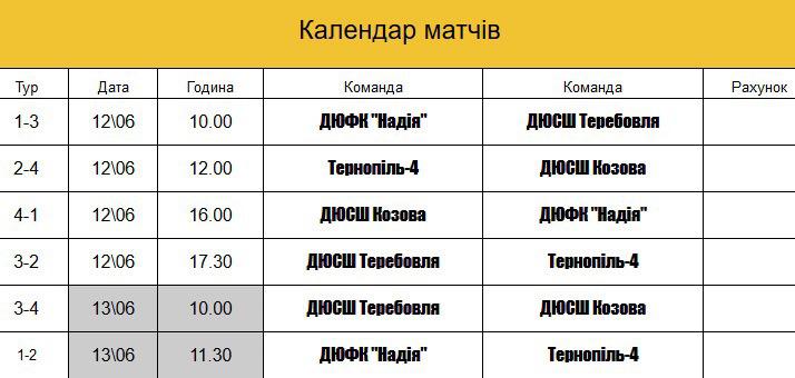Календар матчів фінальної частини ДЮФЛ Тернопільської області серед юнаків 2003 р.н. і молодших