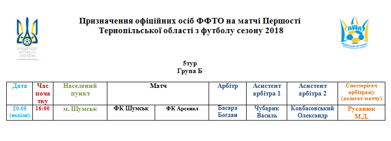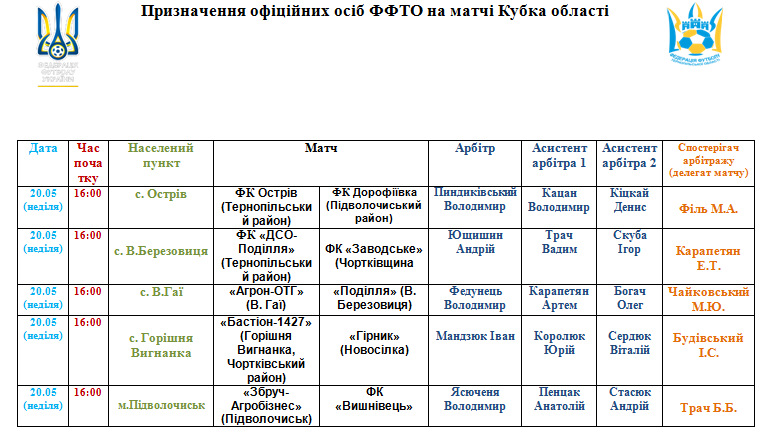 Призначення офіційних осіб ФФТО на матчі кубка області і першості