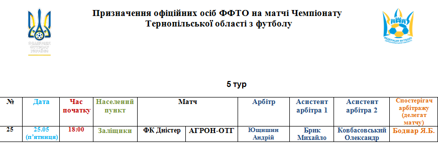 Призначення офіційних осіб на поєдинок 25 травня
