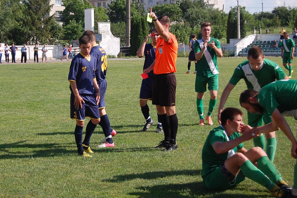 Наприкінці першого тайму за два попередження був вилучений захисник «Дністра» Роман Левицький. Зважаючи на це, а також на три пропущені м’ячі, заліщицька команда опинилися перед другим таймом у дуже скрутному становищі.
