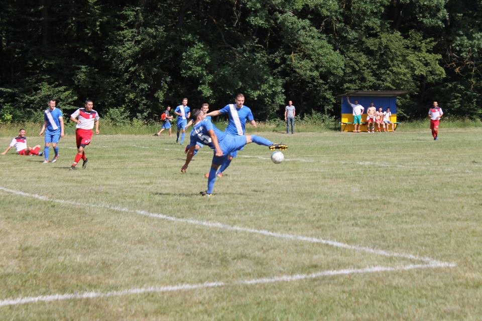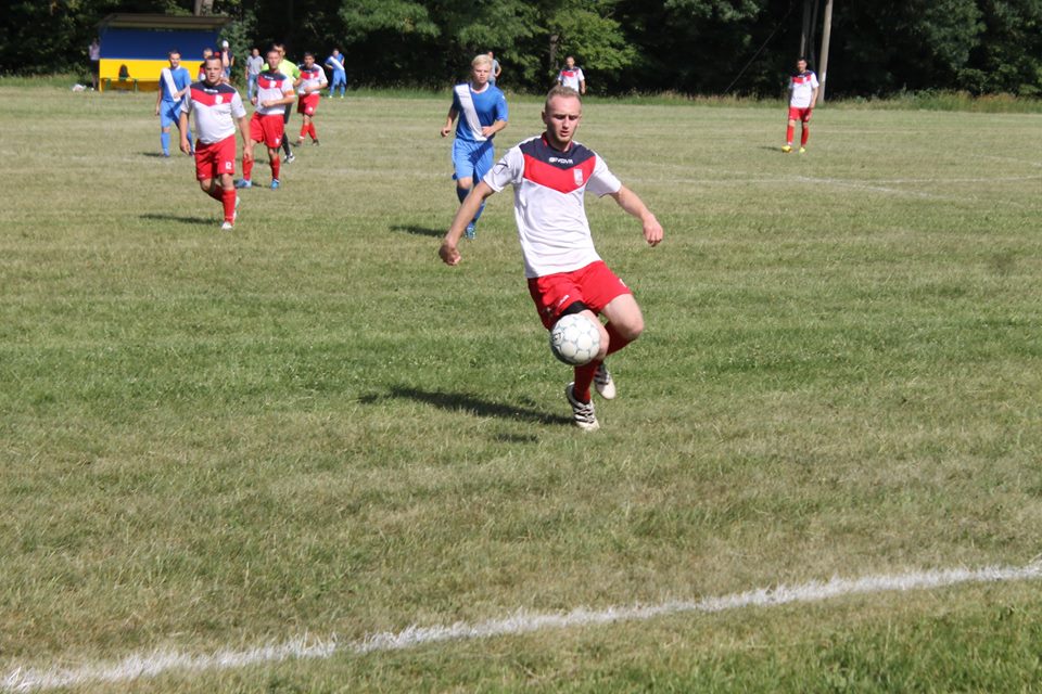Гості побудували гру на контратаках і добилися свого вже в дебюті матчу. Андрій Дутка зробив навісну подачу, а капітан команди Анатолій Миронюк, у невластивій для нього манері, ударом головою відкрив рахунок у матчі (0:1). Той ж Миронюк ще мав кілька шансів, щоб відзначитися, але господарів більше не помилялися в обороні.
