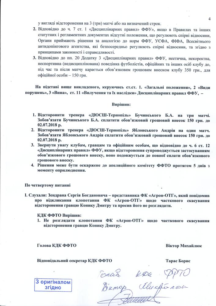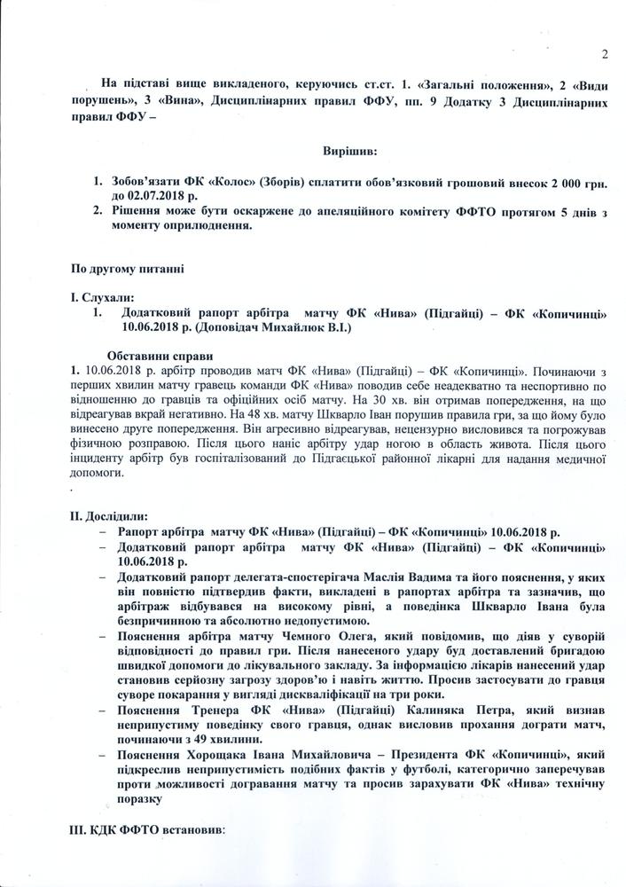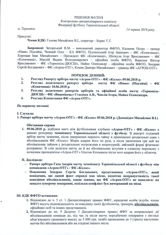 Рішення КДК Федерації футболу Тернопільської області №5/2018