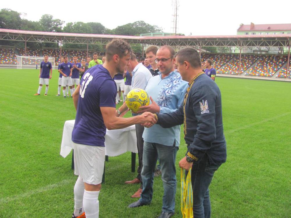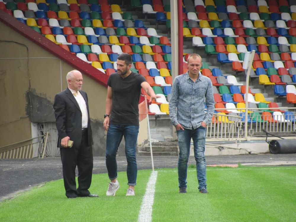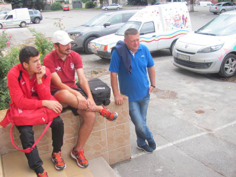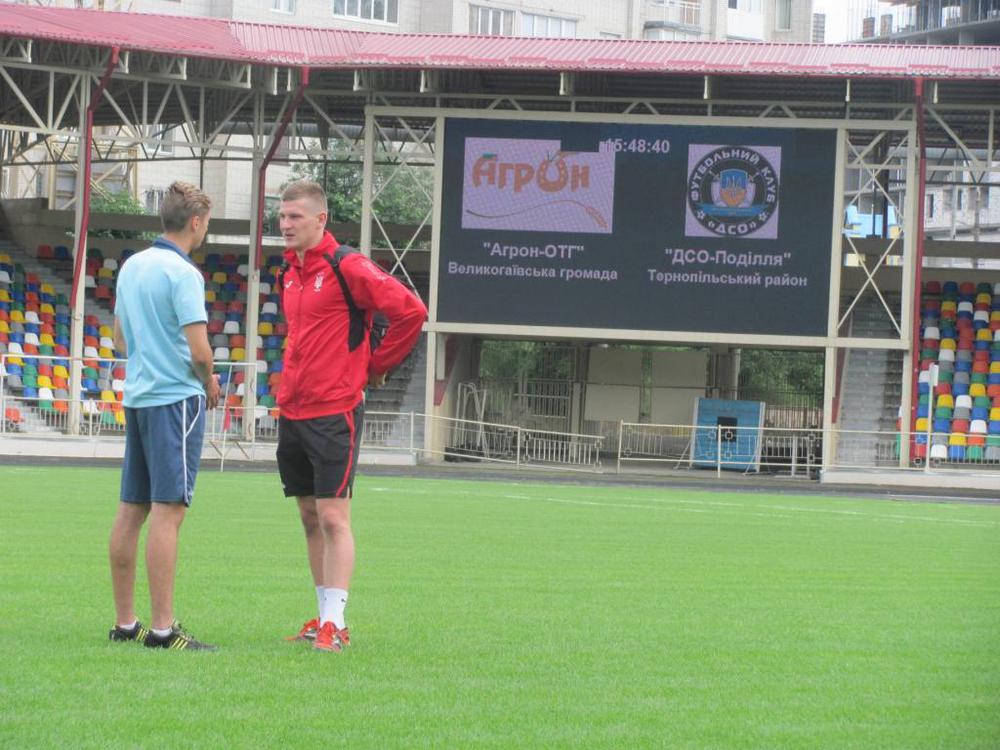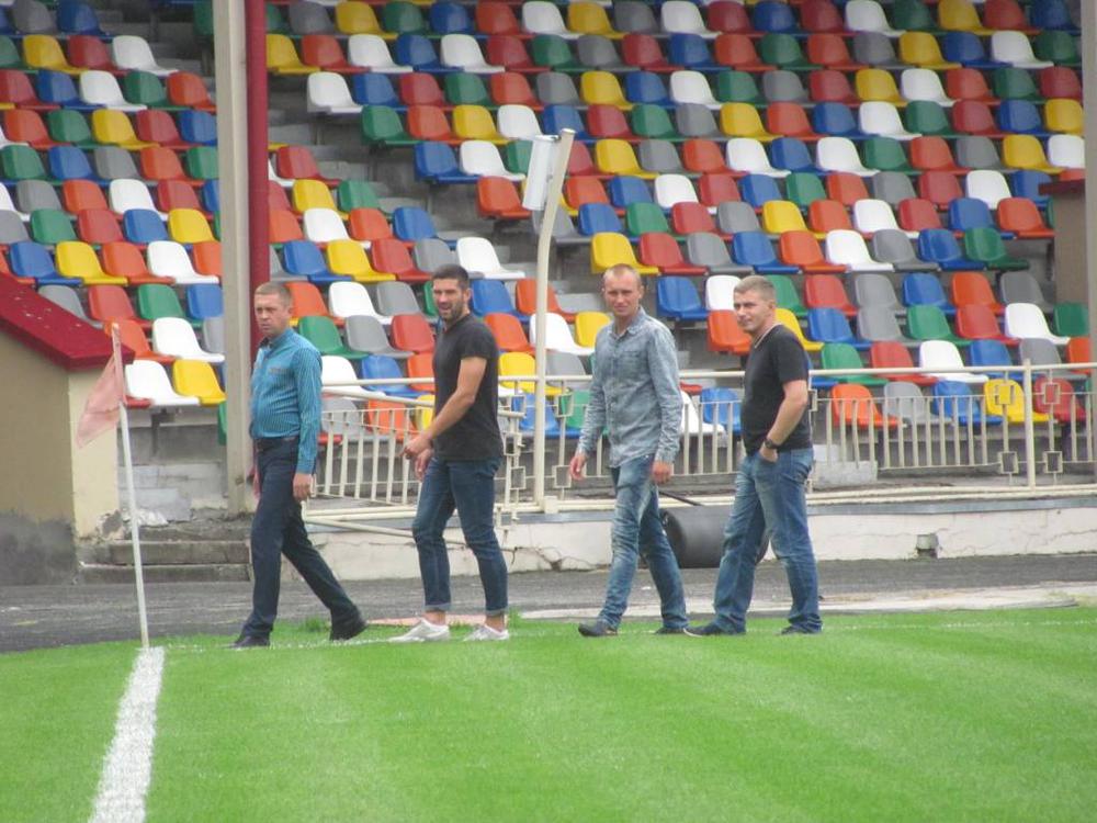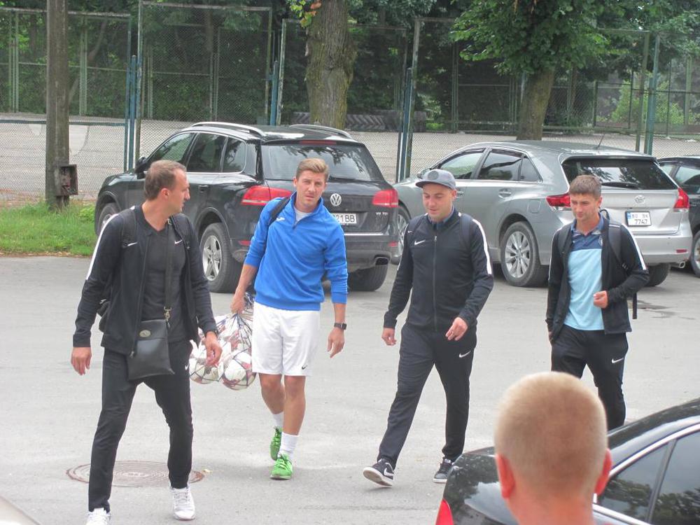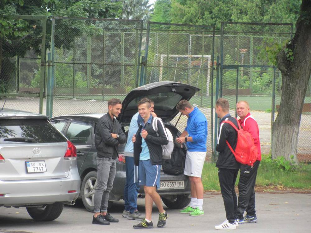 За півтори голини до початку матчу на тернопільський стадіон прибула команда великогаївського «Агрону» разом з тренером Романом Курдупелем.