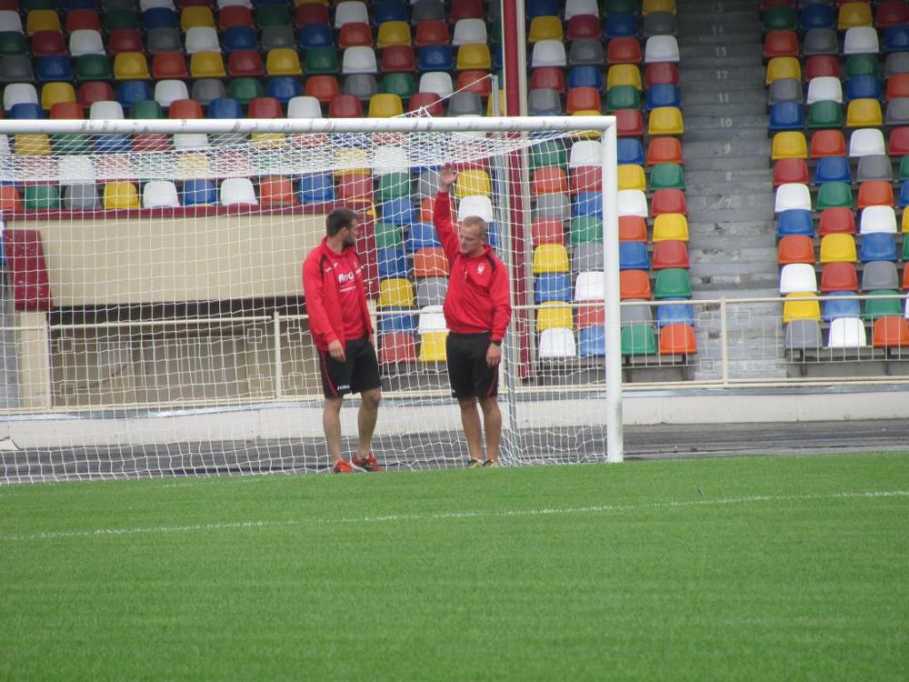 15.40-15.55. Футболісти обох команд оглянули галявину на якій о 17.00 розпочнеться матч.
