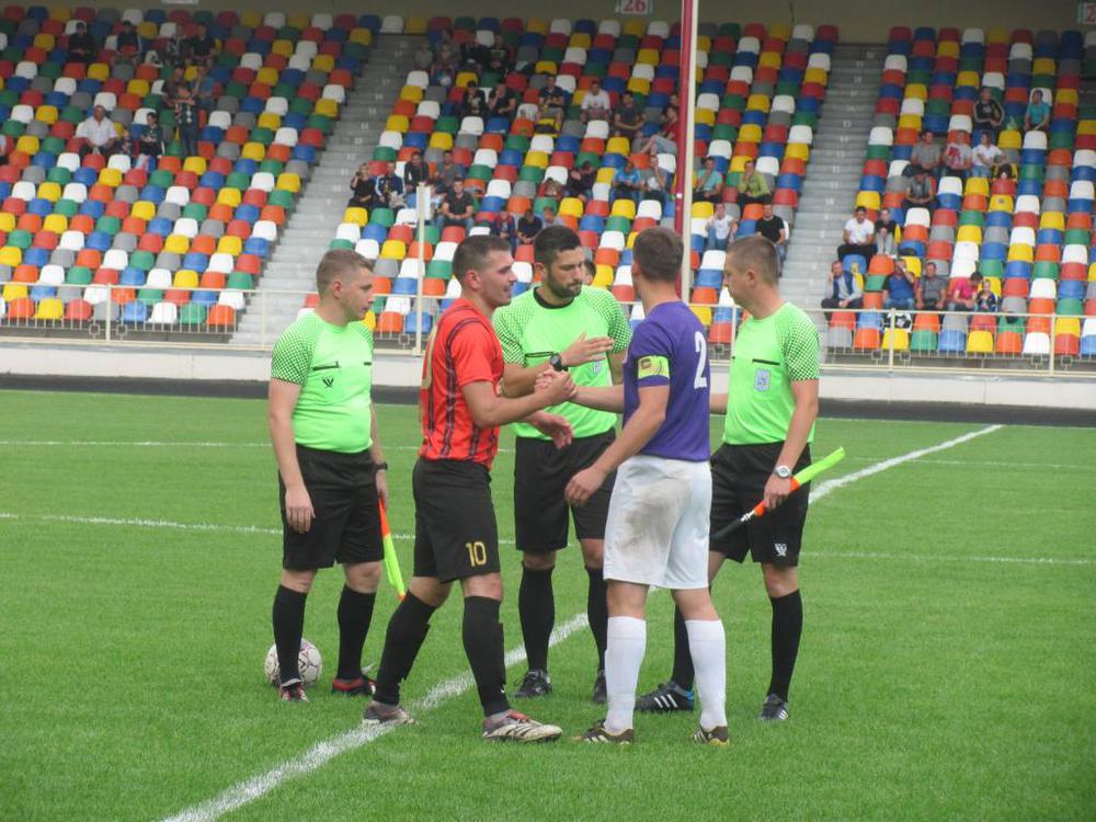 15.20. Першими на тернопільський стадіон прибула бригада арбітрів. Сьогодні вона буде такою: арбітр у полі – Віталій Буняк з Бережан, йому допомагатимуть – Роман Островський та Олег Чемний – обидва з Тернопіль). 4-й арбітр – Іван Мандзюк зі Зборова. Спостерігач арбітражу теж тернополянин – Ярослав Богданович Боднар. Останні настанови дає голови комітету арбітрів ФФТО Борис Борисович Трач.