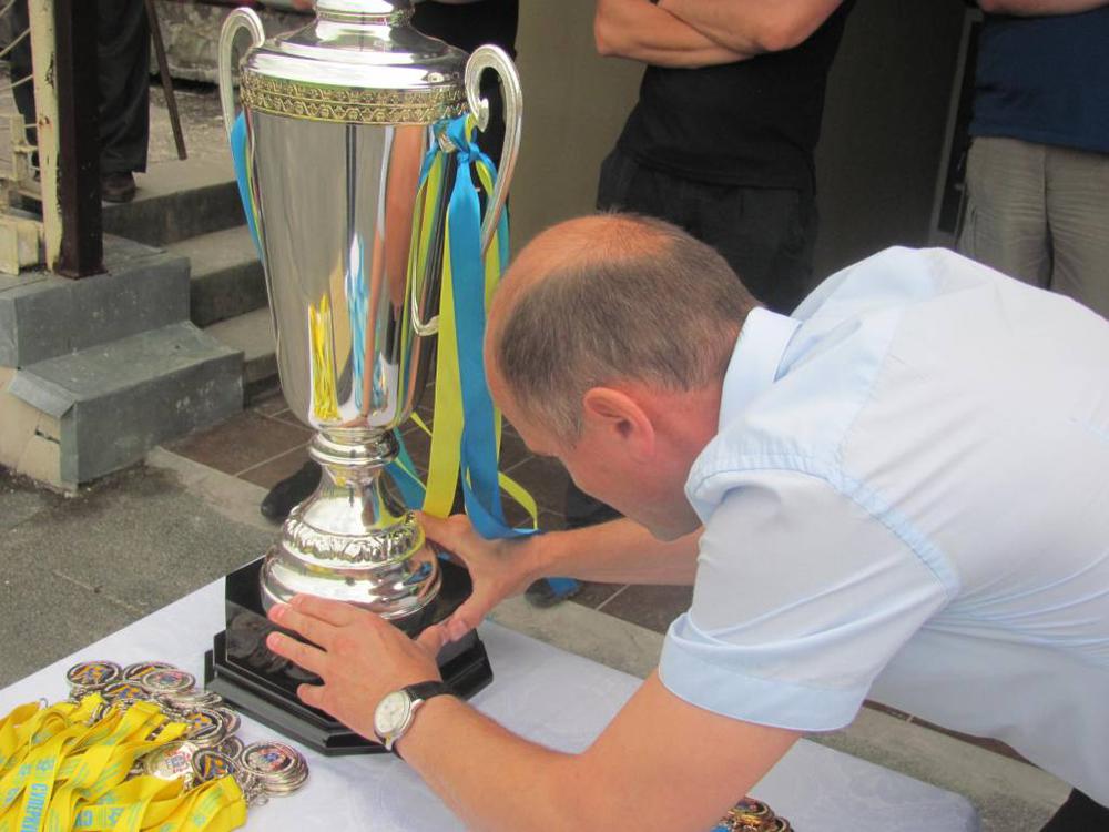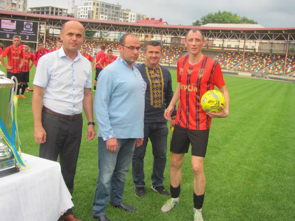 Суперкубок з рук заступника голови Тернопільської ОДА Юрія Юрика та виконавчого директора Федерації футболу Тернопільської області Василя Заторського отримує Дмитро Стриєшин ("ДСО-Поділля").