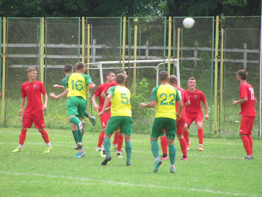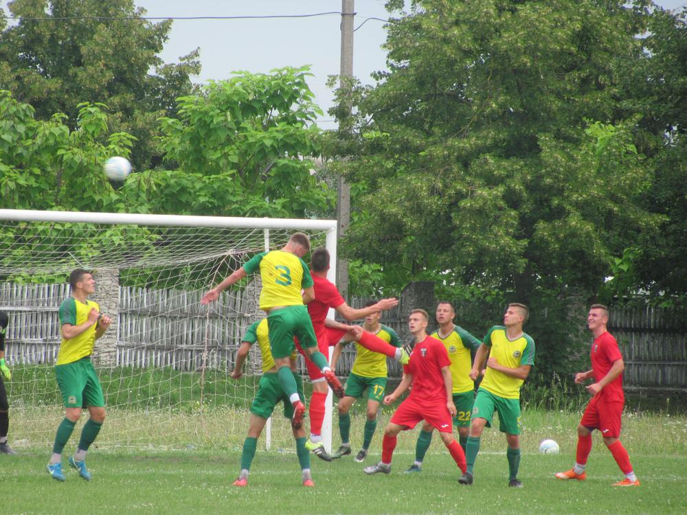 У другому таймі вже футболісти «Ниви» захопили ініціативу і після стандарту зуміли зрівняли рахунок. Височенний нападник Олександр Апанчук після подачі кутового виграв повітряну боротьбу і ударом головою переправив м’яча у «дев’ятку» (1:1, на фото).