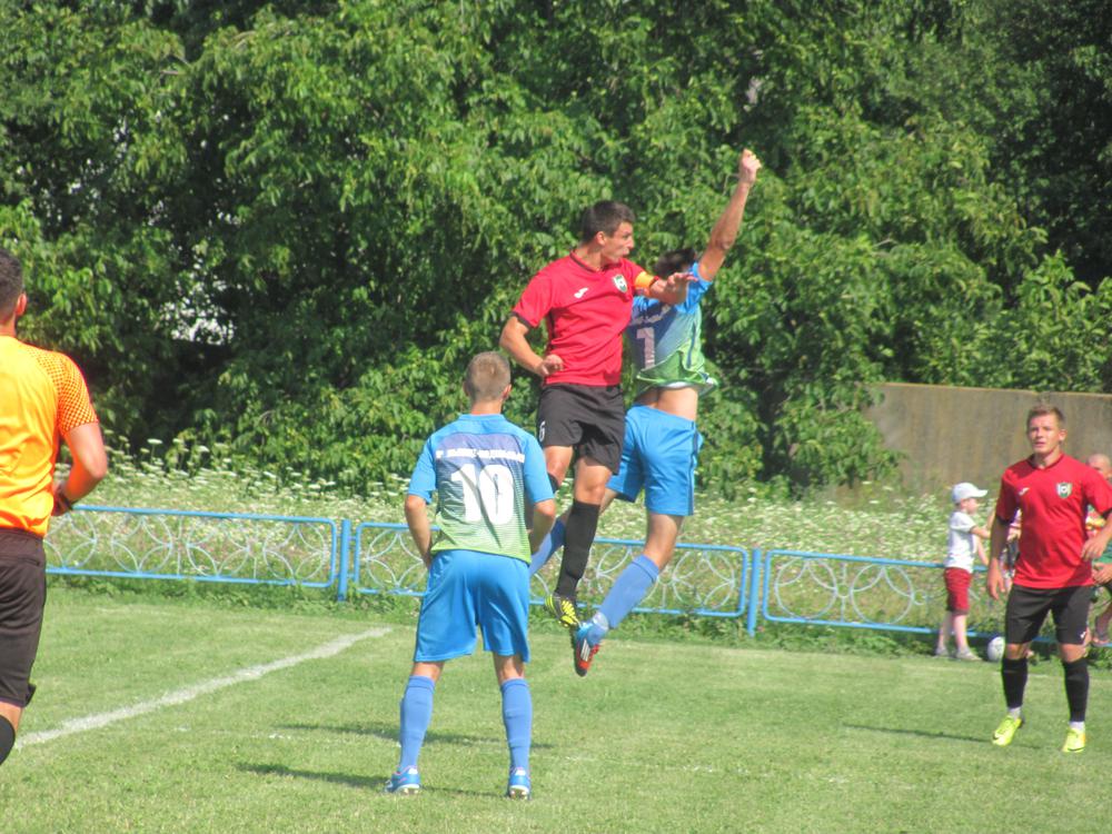 І все ж велика перевага заводської команди втілилася в забитий гол, щоправда вийшов він дещо курйозним. Володимир Гайковий отримав передачу на лівому краю атаки, пройшов з ним декілька метрів і зробив прострільну передачу. Капітан ФК «Мельниця» Максим Щерб’як намагаючись перервати простріл, зрізав м’яча у власні ворота (1:0).