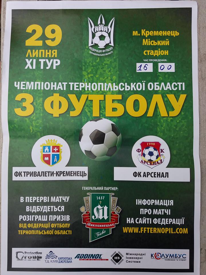 29 липня в рамках 11-го туру групи «Б» першої обласної ліги відбулося кременецьке дербі. На міському стадіоні зустрілися «Три валети» та «Арсенал» з Білокриниці. З мінімальним рахунком перемогу здобули «каноніри» – 1:0.