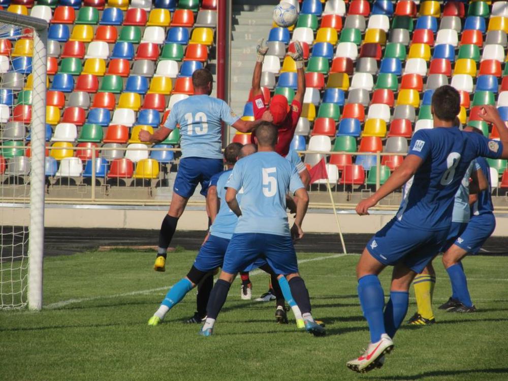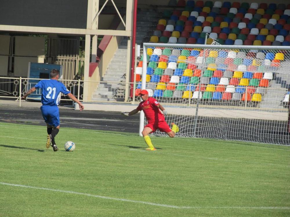 Перший тайм активніше грали наші земляки, які відзначилися на 12-й хвилині. Провалом центральних оборонців гостей скористався Анатолій Василько, який з лінії штрафного майданчика точно пробив у кут воріт (1:0).