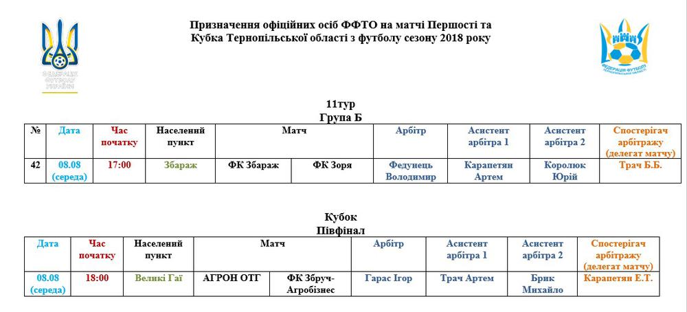 Призначення офіційних осіб ФФТО на матчі Першості та Кубка Тернопільської області з футболу сезону 2018 року