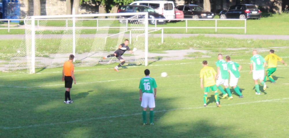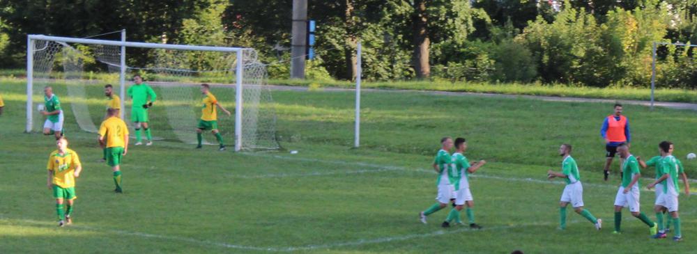 А за десять хвилин гості, в складі яких дебютувало одразу троє екс-футболістів заліщицького «Дністра», відігралися. Після подачі кутового один з заліщан ,а саме Микола Ландяк, який з’явився на полі з лавки запасних, ударом головою поцілив у ближній кут воріт (1:1).