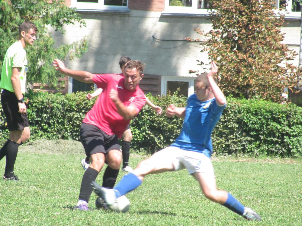 Здавалося, гості легко доведуть матч до перемоги, однак не так сталося. Наприкінці першого тайму після подачі з правого краю ліцеїстом Василем Винничуком, досвідчений оборонець ФК «Ланівці ОТГ-Стандарт» зрізав м’яча у власні ворота (1:2).
