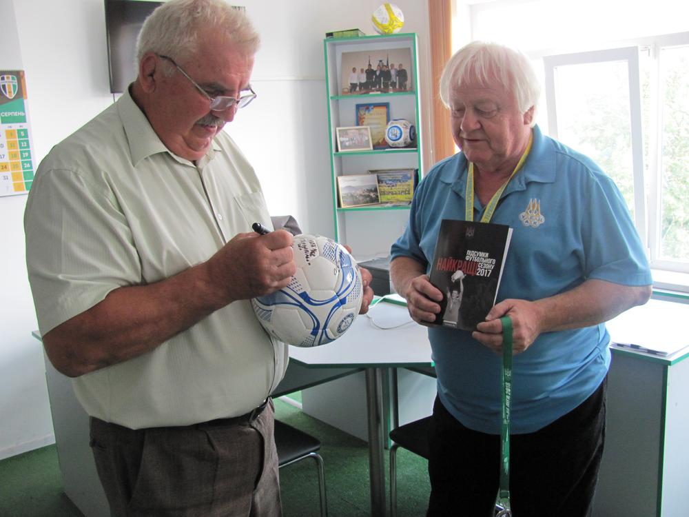 На згадку Василь Заторський презентував Мирону Бицу футбольний м’яч з автографами керівництва федерації та обласного осередку олімпійського руху, фірмову медаль ФФТО та довідник про роботу федерації у 2017 році.