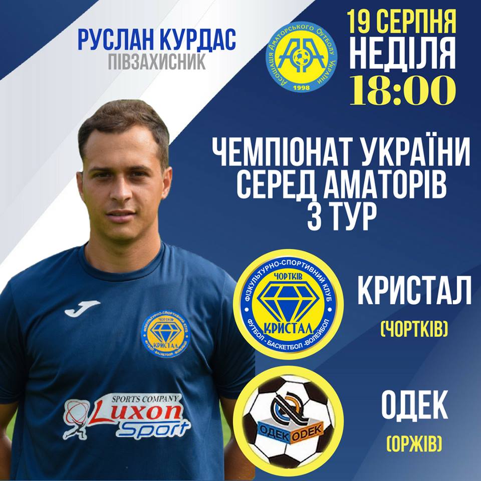 Попри те, що ОДЕК - беззаперечний фаворит матчу 3-го туру аматрнського чемпіонату України, чортківський «Кристал» на правах господарів поля розпочав значно активніше: відразу закрутивши каруселі над воротами гостей. І вже на 8-й хвилині це дало результат!
