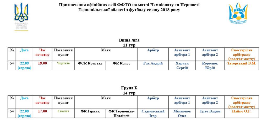 Призначення офіційних осіб ФФТО на матчі 22 серпня