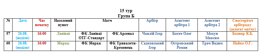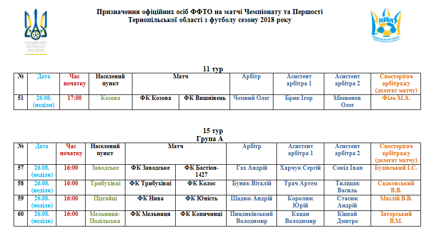 Призначення офіційних осіб ФФТО на матчі 26 серпня