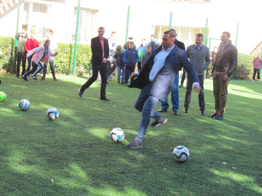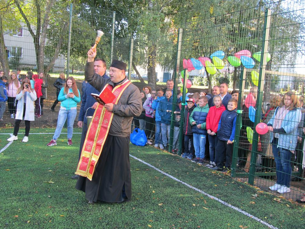 За добрим українським звичаєм, місце для спортивних ігор та тренувань освятив місцевий священик. А далі символічні удари по м’ячу зробили гості заходу та всі, хто найбільше долучилися до спорудження спортивного майданчика.