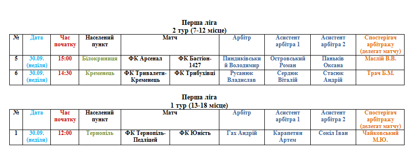 Призначення офіційних осіб ФФТО на матч 29-30 вересня
