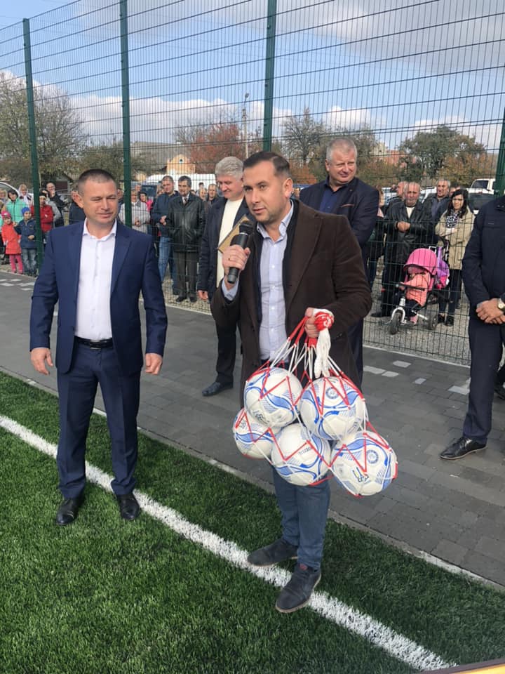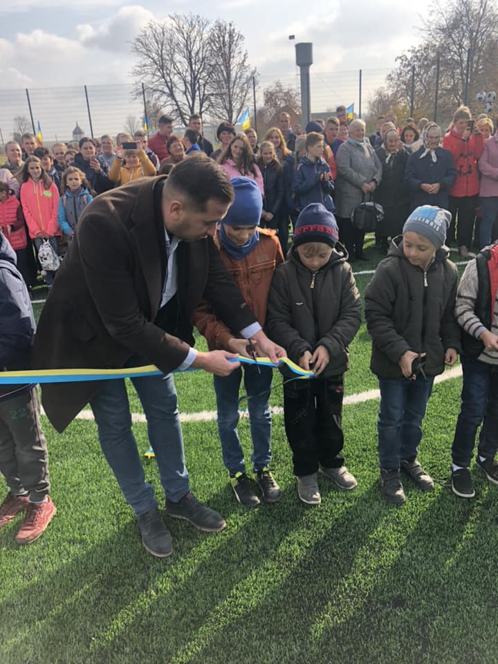 Присутні стали свідками відкриття футбольного майданчика зі штучним покриттям, який був профінансований державною субвенцією на розвиток регіонів від Федерації Футболу України та співфінансування коштами місцевого бюджету.