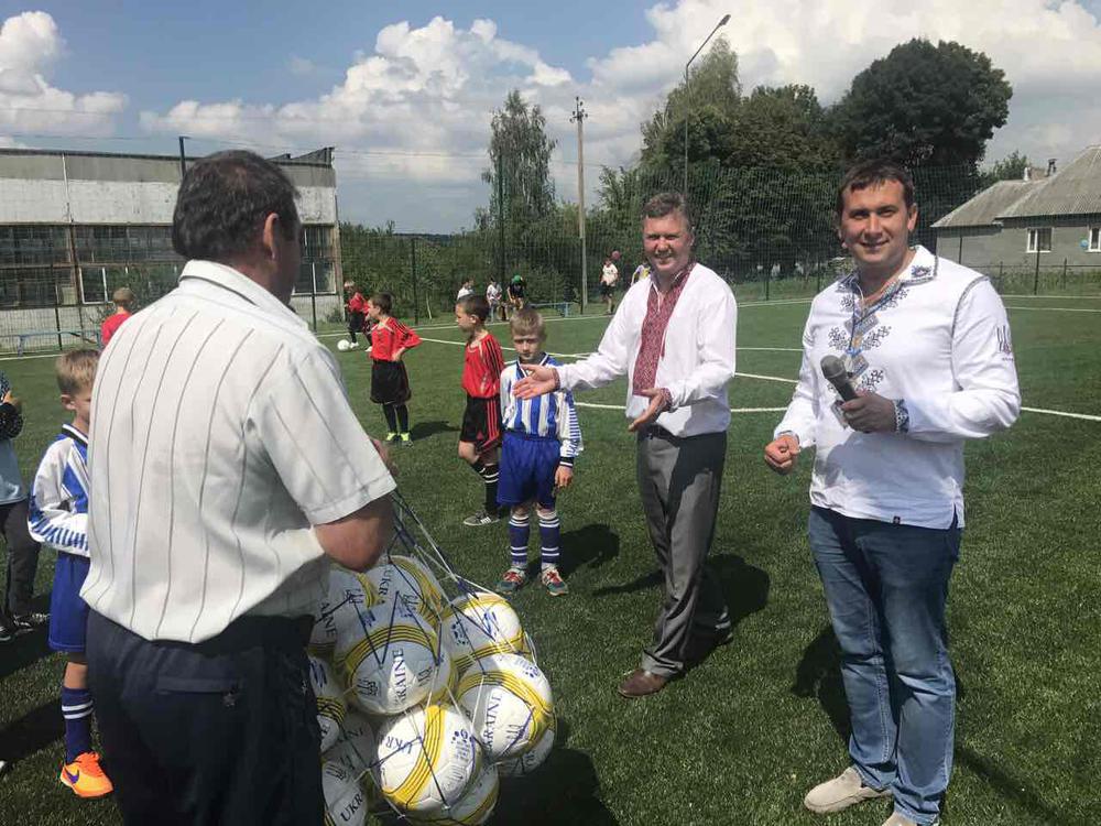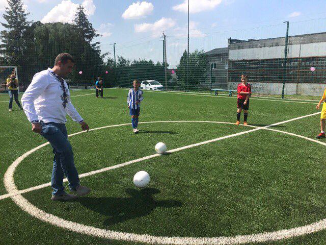 Після слів вітань, до який долучився ще й голова Тернопільської обласної ради Віктор Овчарук, та подарунків юним футболістам, перший символічний удар по м’ячу зробив Тарас Юрик, а далі спортивний майданчик випробували 10-12-річні дітки, котрі взяли участь у турнірі з міні-футболу.