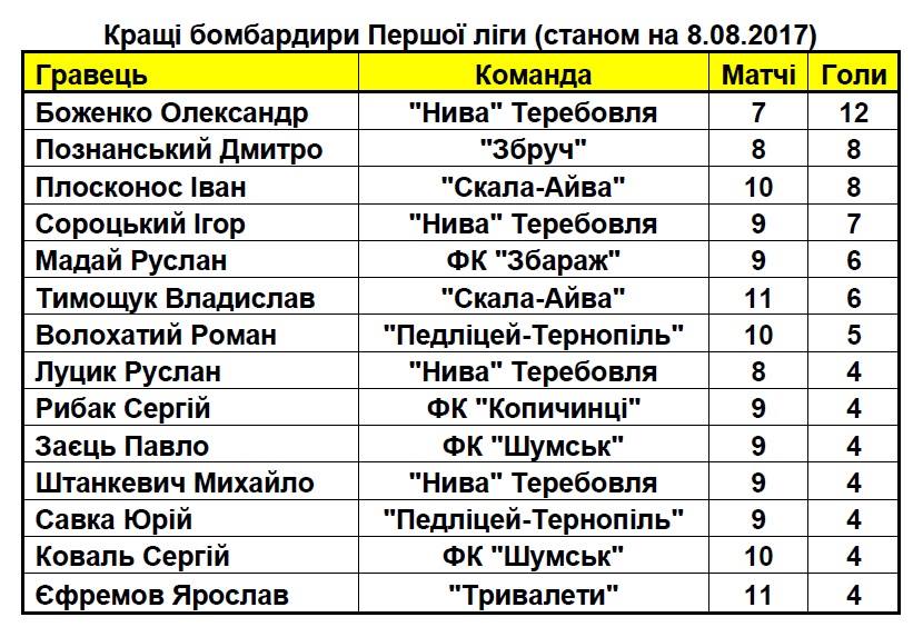 Бомбардири першої ліги