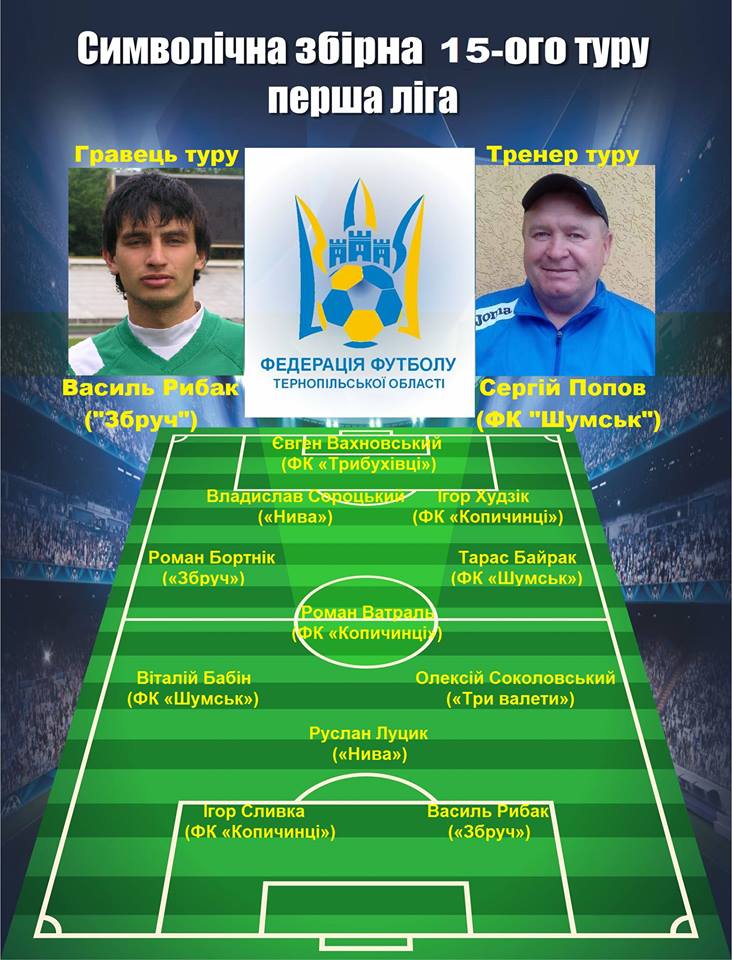 2017-08-31 21:05:23.000000Пропонуємо до Вашої уваги символічну збірну 15-го туру першої ліги чемпіонату Тернопільської області з футболу 2017 року.