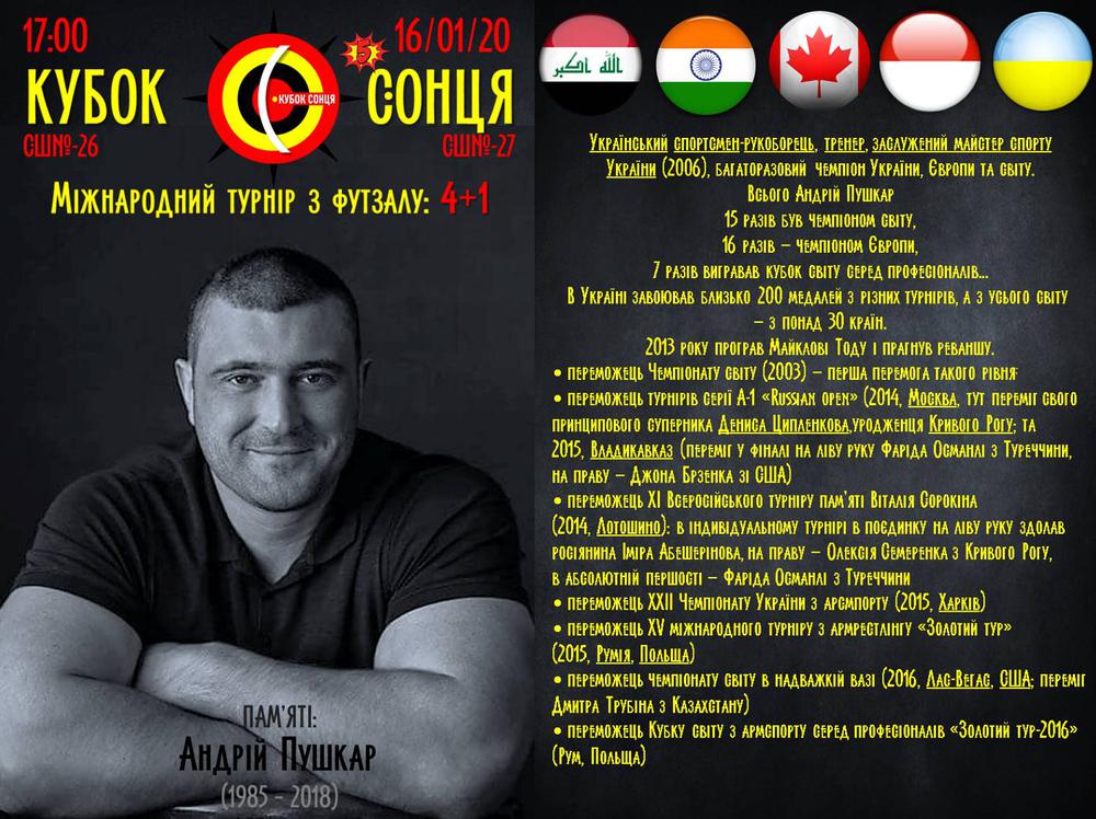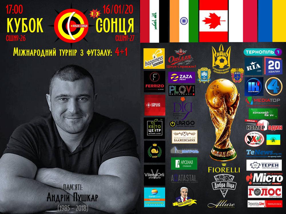 У четвер, 16 січня, у Тернополі паралельно в двох спортивних залах відбудеться міжнародний турнір з футзалу "Кубок Сонця-5" пам'яті відомого кременецького спортсмена Андрія Пушкаря. Асоціація футболу Тернопільщини виступила співорганізатором цих змагань.