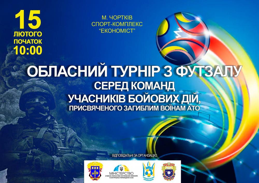 Обласний турнір з футзалу серед команд учасників антитерористичної операції, присвячений загиблим воїнам АТО, відбудеться у Чорткові. Проводитиметься такий захід з метою залучення учасників антитерористичної операції до систематичних занять фізичною культурою і спортом, популяризації футзалу та ведення здорового способу життя.