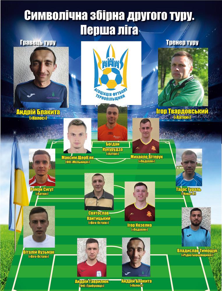 Пропонуємо до Вашої уваги символічну збірну другого туру першої ліги чемпіонату Тернопільської області 2020 року за версією Асоціації футболу Тернопільщини.