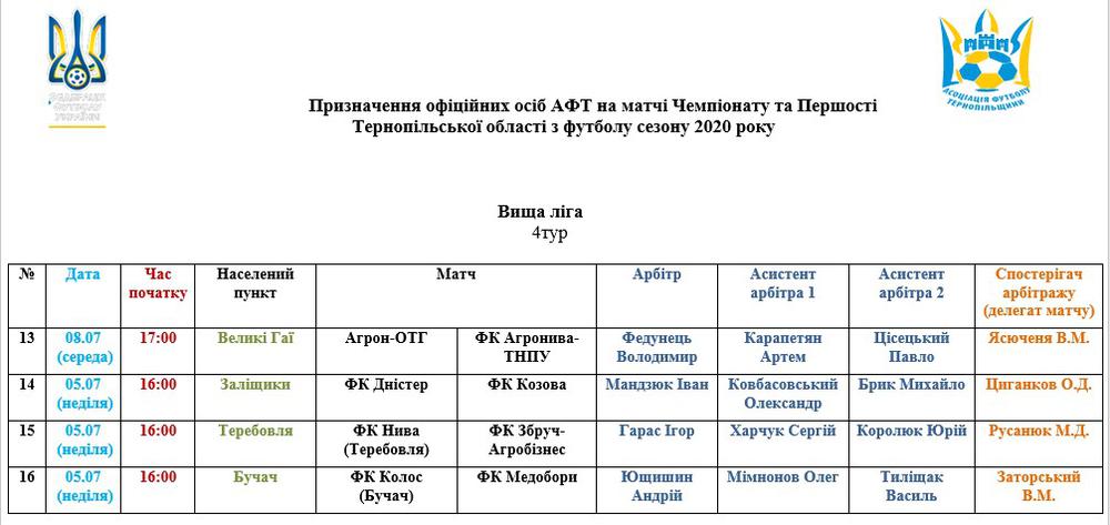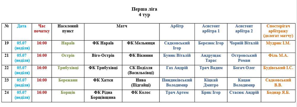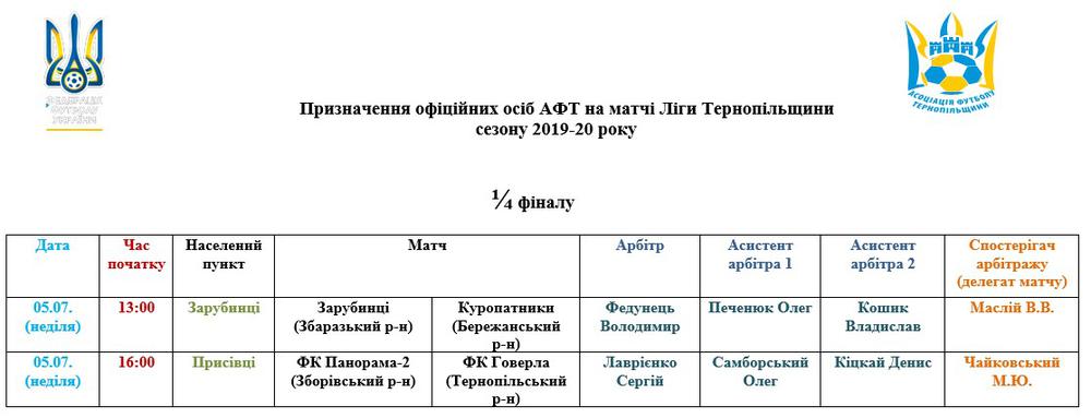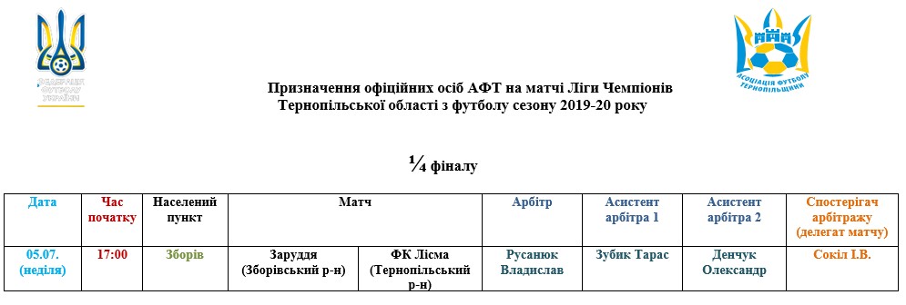 Призначення офіційних осіб АФТ на матчі 05 липня
