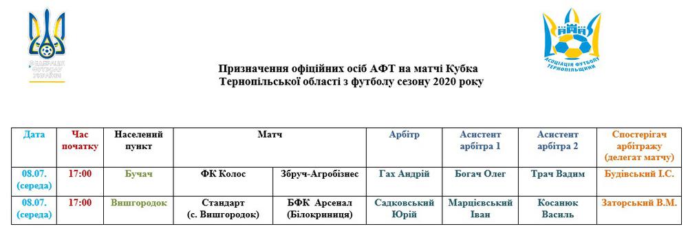 Призначення офіційних осіб АФТ на матчі 08 липня