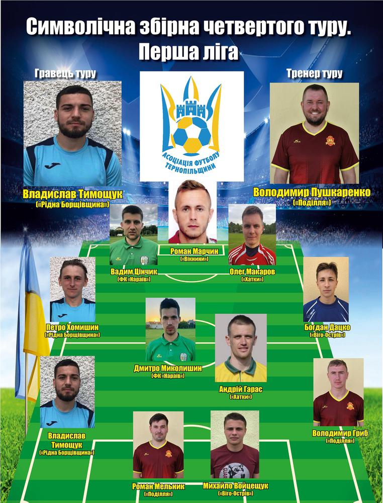 Пропонуємо до Вашої уваги символічну збірну четвертого туру першої ліги чемпіонату Тернопільської області 2020 року за версією Асоціації футболу Тернопільщини.