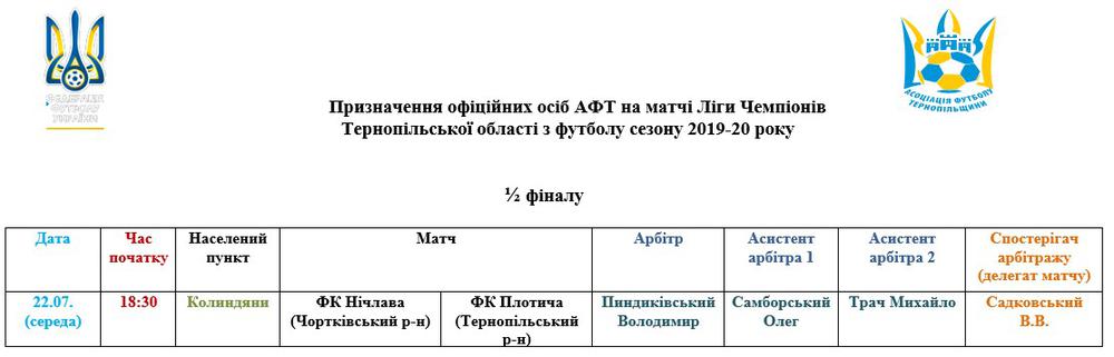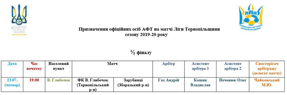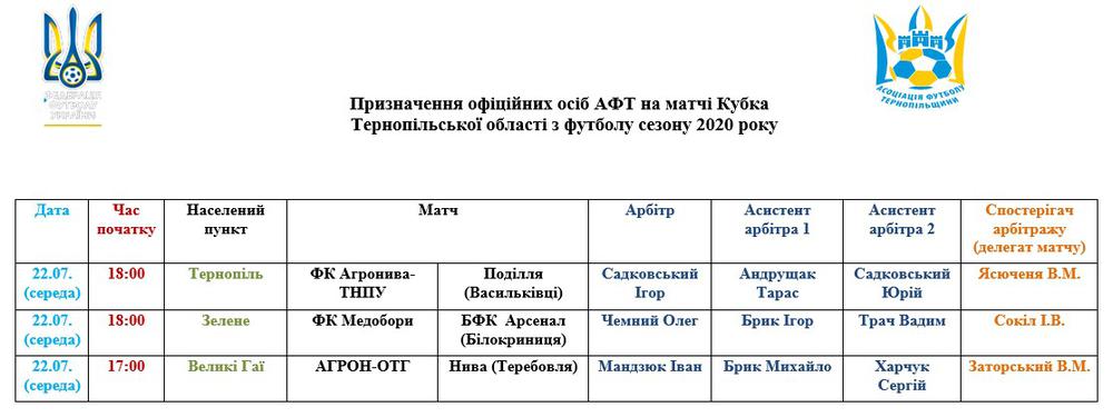 Призначення офіційних осіб АФТ на матчі 22-23 липня
