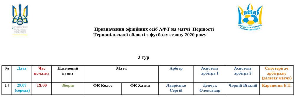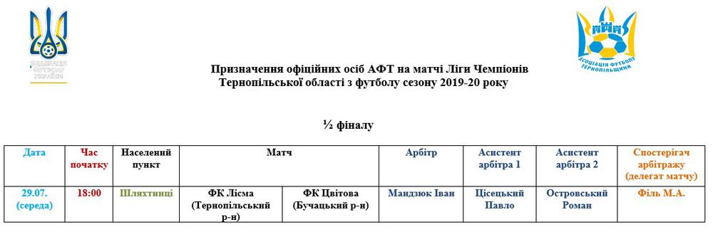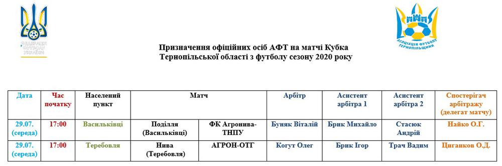 Призначення офіційних осіб АФТ на матчі 29 липня