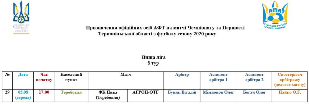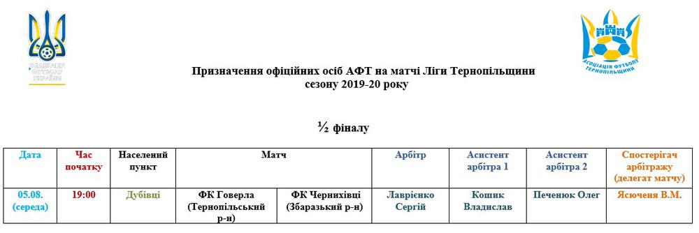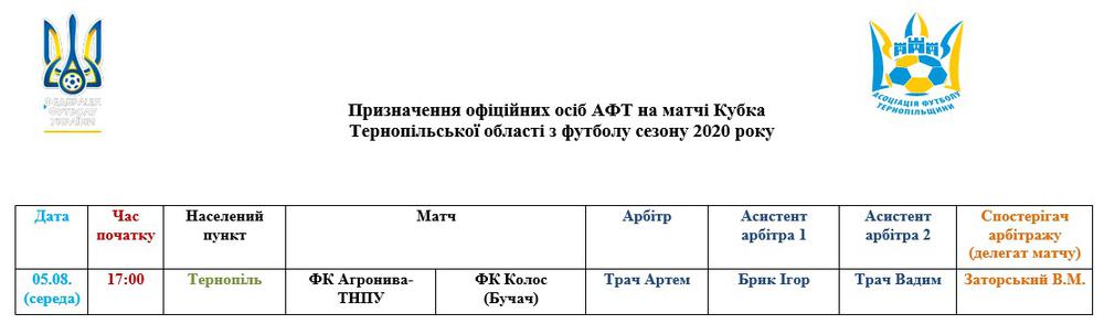 Призначення офіційних осіб АФТ на матчі 05 серпня