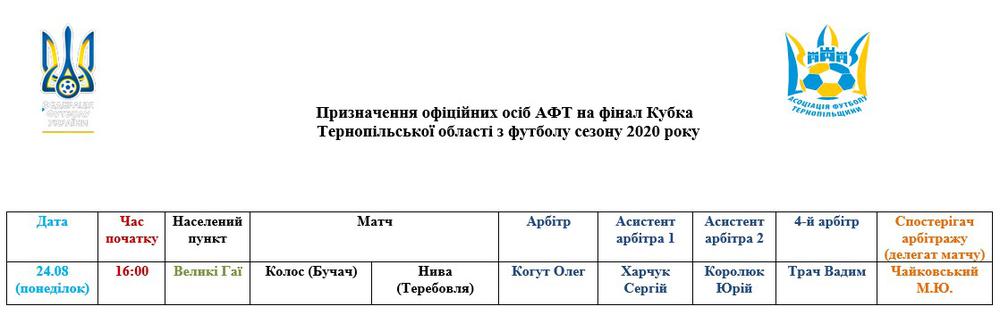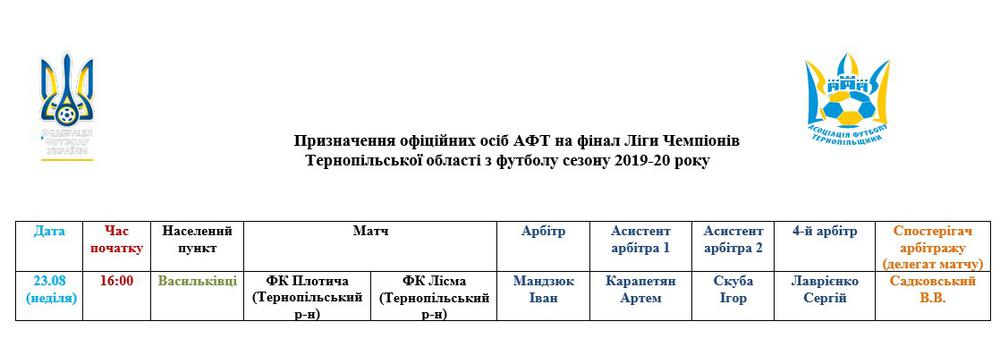Призначення офіційних осіб Асоціації футболу Тернопільщини