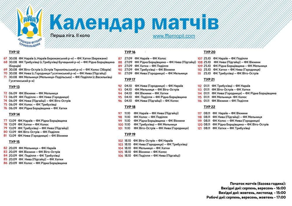 Календар першої ліги чемпіонату Тернопільської області. Друге коло