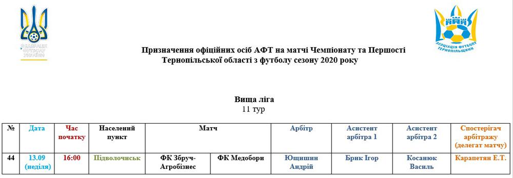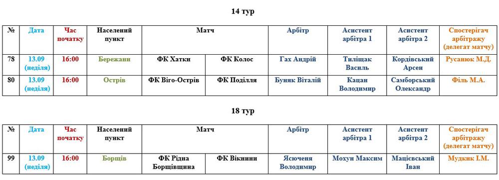 Призначення офіційних осіб АФТ на матчі 13 вересня