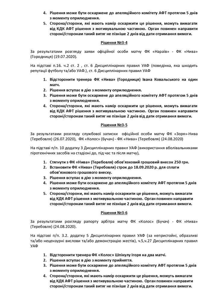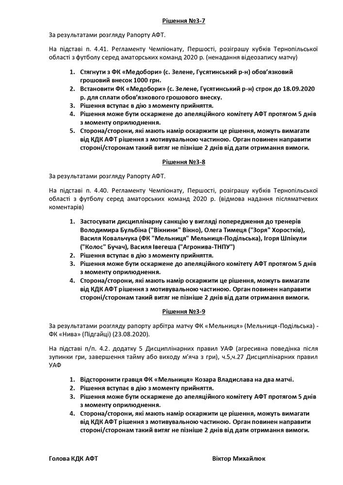 Рішення контрольно-дисциплінарного комітету АФТ №3/2020