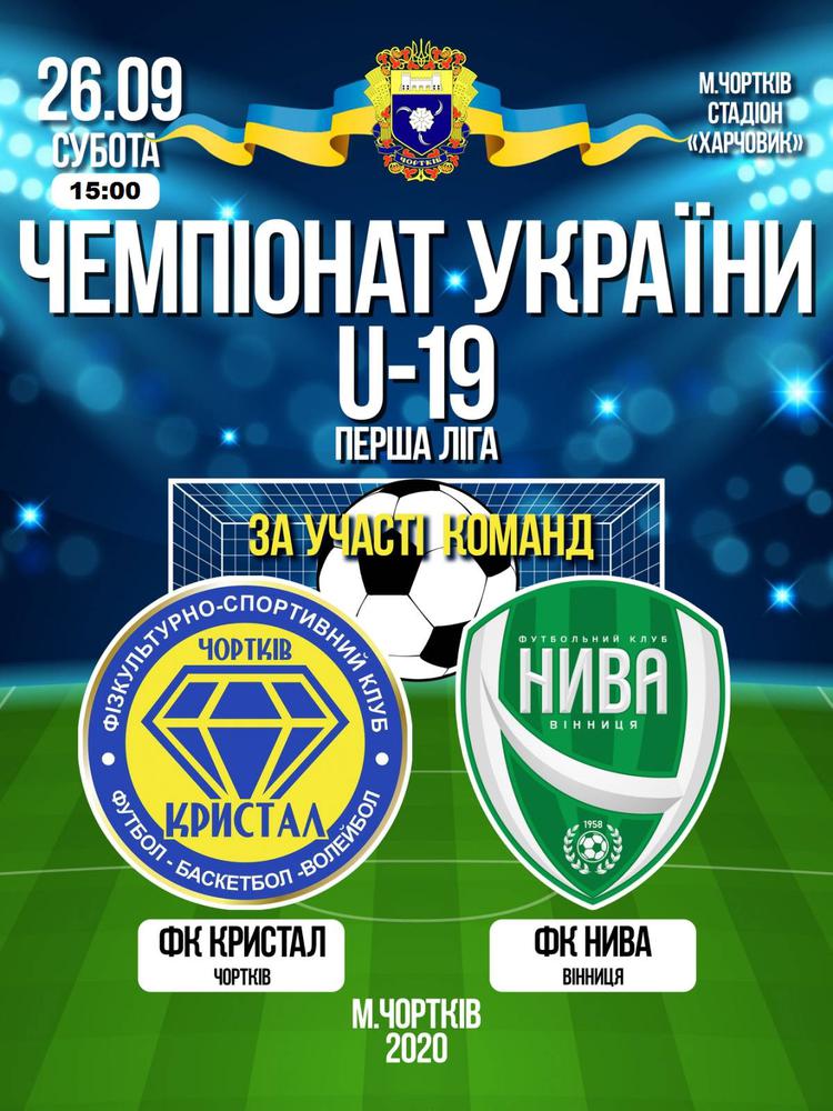 У суботу, 26 вересня, ФСК "Кристал" (Чортків) зіграє перший матч чемпіонату України в першій лізі (U-19). Суперником чортківчан будуть однолітки з вінницької "Ниви".