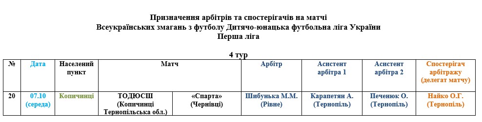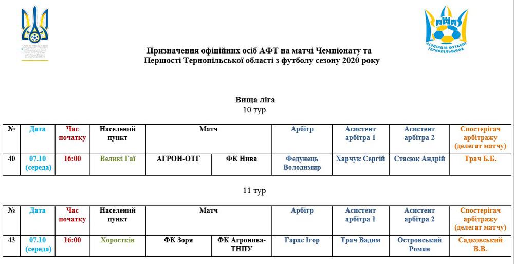 Призначення офіційних осіб АФТ на матчі 07 жовтня