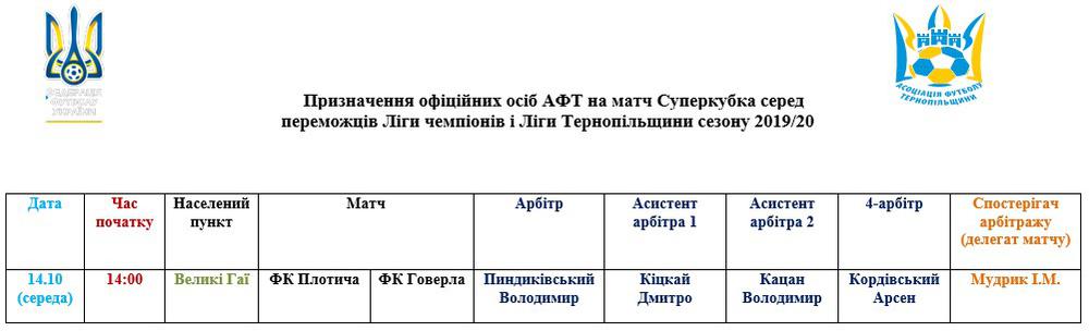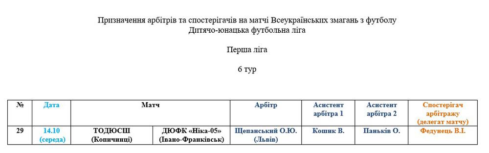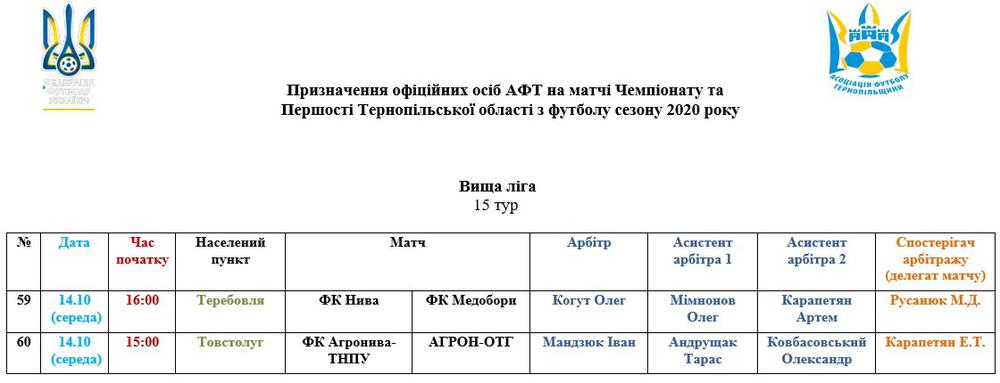 Призначення офіційних осіб АФТ на матчі 14 жовтня