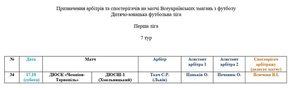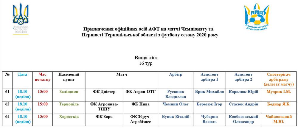 Призначення офіційних осіб АФТ на матчі 18 жовтня