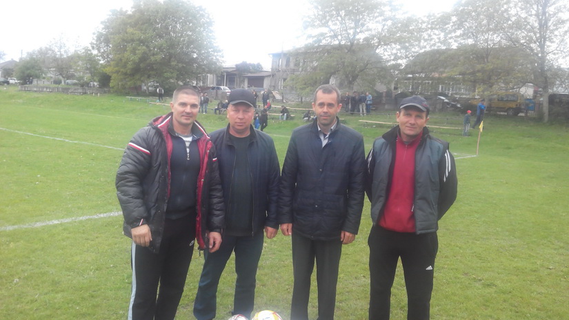 На фото – наставники МФК «Скала-Айва» Сергій Калуцький, Богдан Слотвінський, голова громади Віктор Мирончук та президент ФК Ігор Малюта.